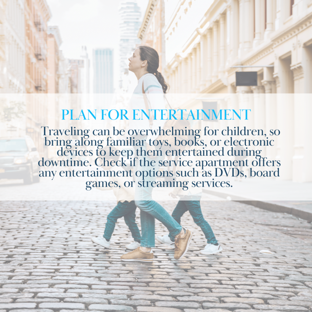 While exploring a new destination is exciting, children often need downtime to relax and recharge. Service apartments usually provide some entertainment options like TVs or streaming services, but it’s a good idea to bring along some of your own as well. Pack a few of their favorite books, toys, or electronic devices to keep them occupied during quiet moments. This way, you’ll have something on hand to entertain them during those inevitable lulls in activity.