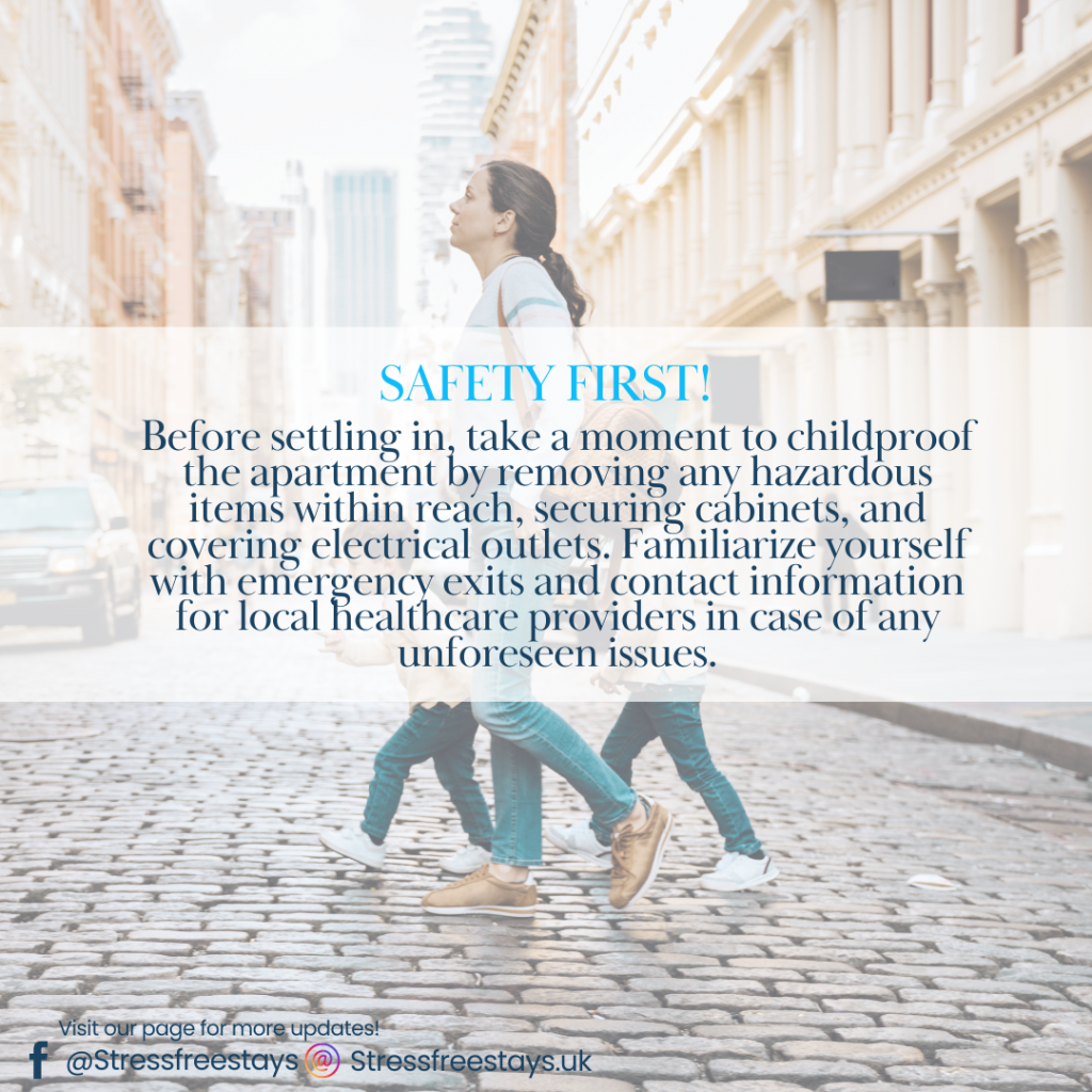 Safety is always a priority when traveling with children. After checking in, take a few minutes to childproof the apartment. Move any breakable or dangerous items out of reach, secure cabinets, and cover electrical outlets if necessary. Familiarize yourself with the apartment’s layout, including emergency exits, and keep a list of important contacts like local healthcare providers handy. These small steps can provide peace of mind and ensure that your family is safe throughout your stay.